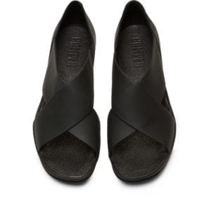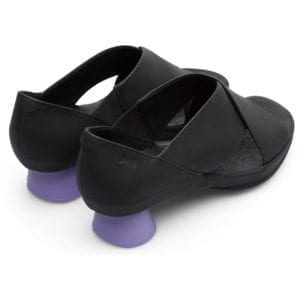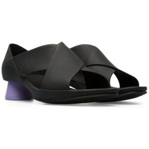 Μαύρο γυναικείο πέδιλο με λουράκι Χ από φυσικό δέρμα με μοβ λαστιχένια εξωτερική σόλα.