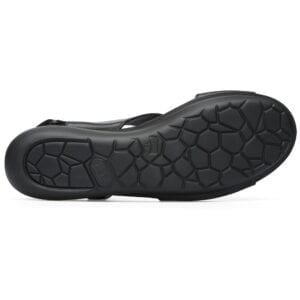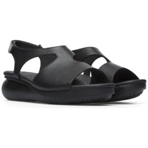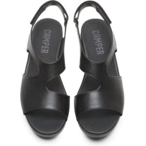 Μαύρο πέδιλο για γυναίκες. Επάνω μέρος από δέρμα με λουράκια. Εξώφτερνο με Velcro και άνοιγμα στα δάχτυλα. Μαύρη σόλα πλατφόρμα, 90% EVA και 10% λάστιχο.