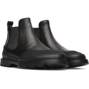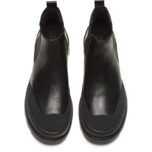 Μαύρα γυναικεία μποτάκια. Άνω τμήμα από μη αποψιλωμένο δέρμα και ύφασμα με εξωτερική σόλα EVA.