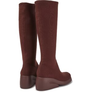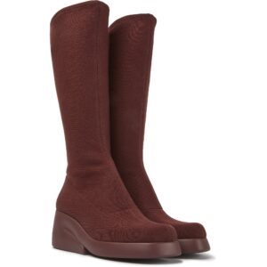 Μπορντό γυναικείες μπότες με τακούνι πλατφόρμα από 54% TENCEL™ Lyocell ύφασμα, 90% PU και 10% ABS.
