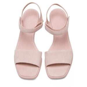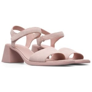 Γυναικείο ανοιχτό ροζ πέδιλο από δέρμα νουμπούκ με λαστιχένια εξωτερική σόλα.