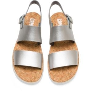 Ασημί γυναικείο πέδιλο από φυσικό δέρμα με εξωτερική σόλα EVA και κλείσιμο με πόρπη.