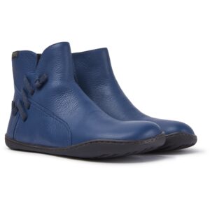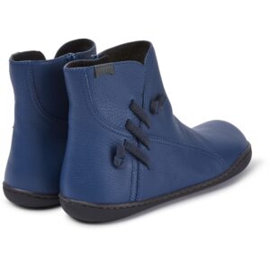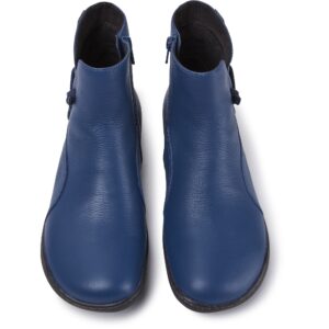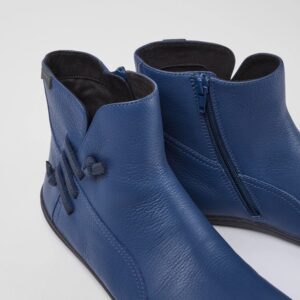 Blue leather women's ankle boots with 20% recycled TPU outsoles.