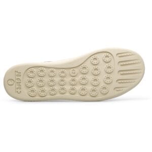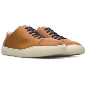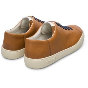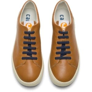 Καφέ καθημερινό παπούτσι για άντρες. Επάνω μέρος από δέρμα φυτικής δέψης με ελαστικά κορδόνια. Μπεζ σόλα από 20% ανακυκλωμένο EVA.