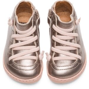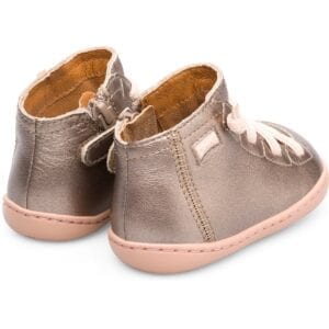 Beige metallic zip ankle boot for girls. Full grain leather with stitched outsole.