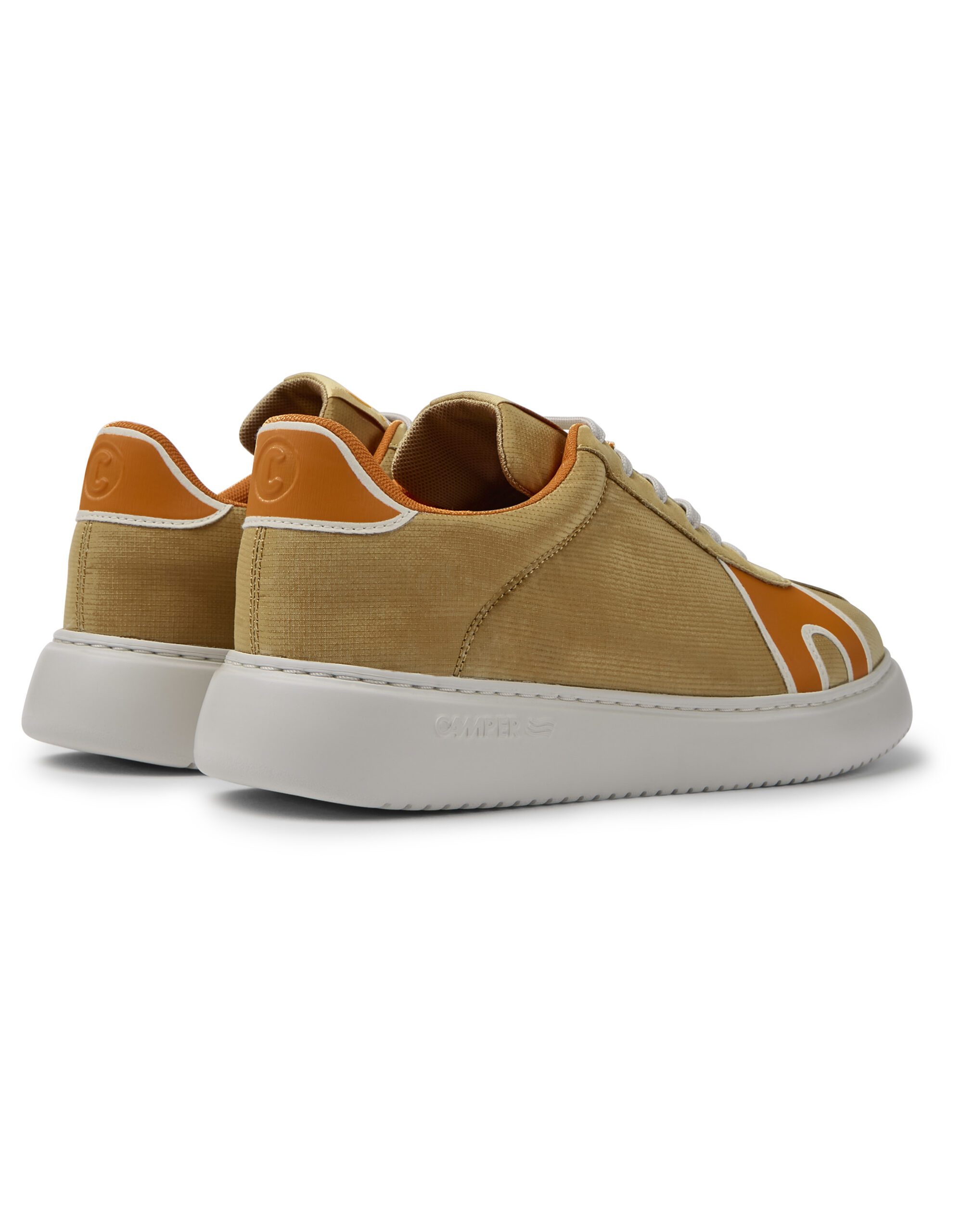 Brown, orange and beige recycled polyester and nubuck men's sneakers with XL EXTRALIGHT® Organix™ outsoles (30% bio-based sugarcane).
