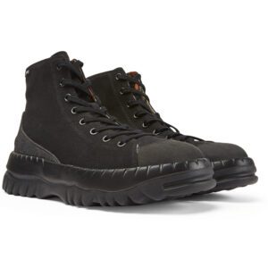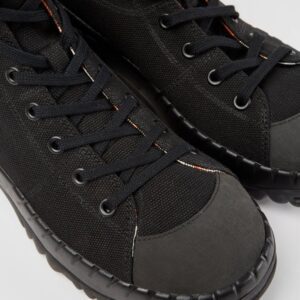Black rubber and BCI cotton men's boots with 70% PU and 30% rubber outsoles.
