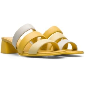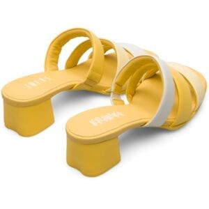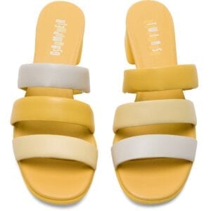 Πολύχρωμο πέδιλο TWINS για γυναίκες. Κίτρινο και λευκό επάνω μέρος με δερμάτινα λουράκια. Κίτρινη σόλα με τακούνι από 80% TPU και 20% ABS.