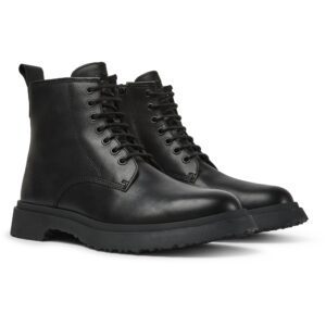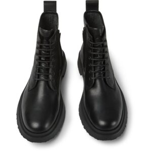 Smart μαύρες αντρικές χαμηλές μπότες με κορδόνια. Μη αποψιλωμένο δέρμα με εξωτερική σόλα από καουτσούκ και EVA.