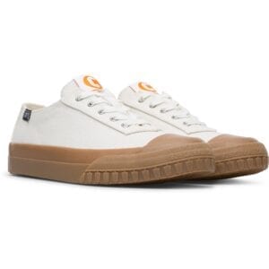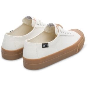 Λευκό καθημερινό παπούτσι για γυναίκες. Επάνω μέρος με κορδόνια, κατασκευασμένο από 90% φυσικό βαμβάκι. Καφέ 23% ανακυκλωμένη λαστιχένια σόλα.
