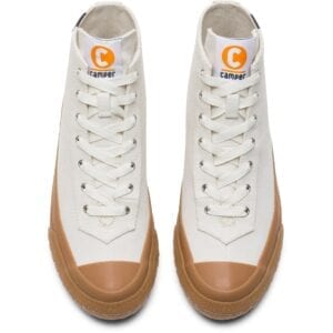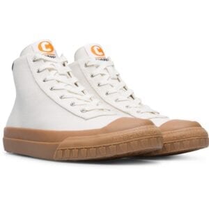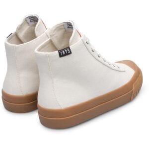 Λευκές μπότες για γυναίκες. Επάνω μέρος από 95% φυσικό βαμβάκι με κορδόνια. Καφέ 23% ανακυκλωμένη λαστιχένια σόλα.