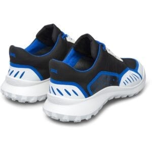 Πολύχρωμο καθημερινό παπούτσι για άντρες. Επάνω μέρος από μαύρο τεχνικό ύφασμα με τεχνολογία GORE-TEX Surround® και μπλε και λευκές λεπτομέρειες. Με κορδόνια και λευκή σόλα 100% EVA.