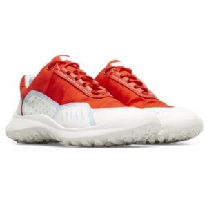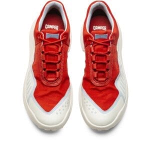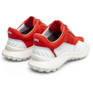 Πολύχρωμο καθημερινό παπούτσι με τεχνολογία GORE-TEX Surround® για γυναίκες. Κόκκινο και λευκό επάνω μέρος με κόκκινες και μπλε λεπτομέρειες. Με κόκκινα κορδόνια και λευκή σόλα 100% EVA.