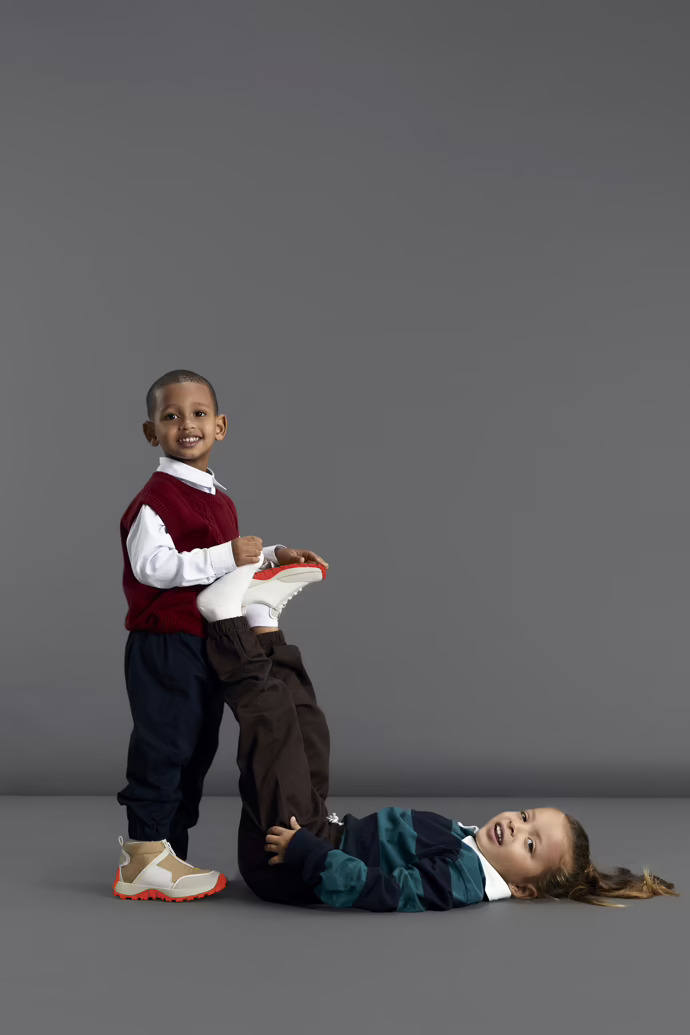 Υποδεχτείτε το Drift Trail, το καθημερινό παπούτσι με έμπνευση από τα ’70s της συλλογής για ενηλίκους, προσαρμοσμένο για τα μικρά ποδαράκια.