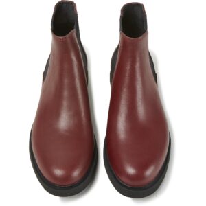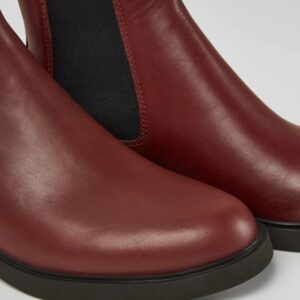 Μπορντό δερμάτινα γυναικεία μποτάκια με φερμουάρ και εξωτερικές σόλες EVA.