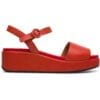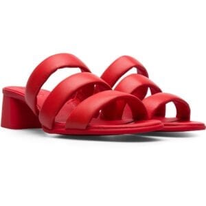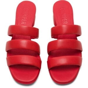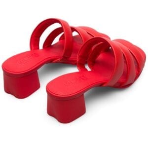 Κόκκινο πέδιλο για γυναίκες. Επάνω μέρος με δερμάτινα λουράκια. Κόκκινη σόλα με τακούνι από 80% TPU και 20% ABS.