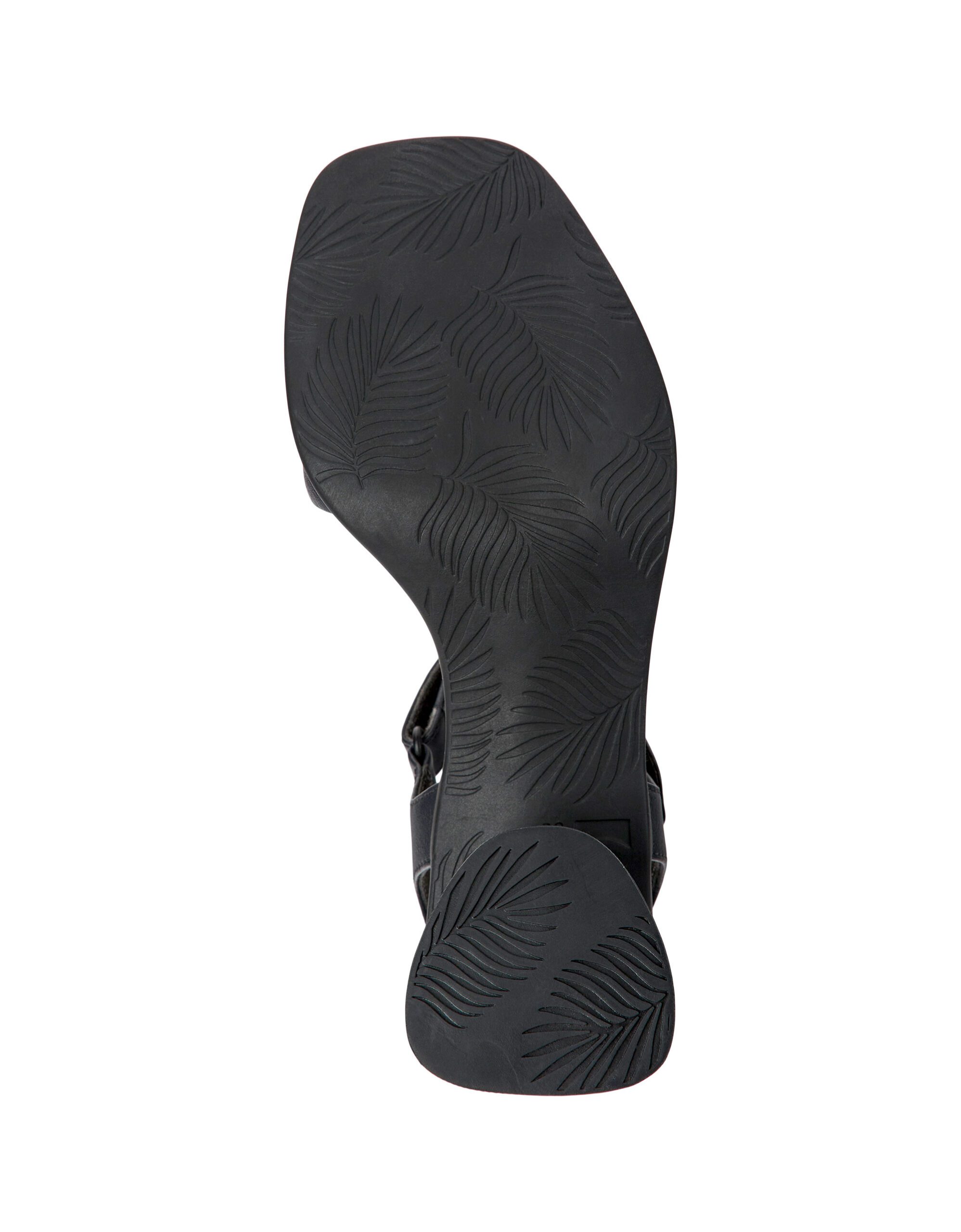 Μαύρα δερμάτινα γυναικεία πέδιλα με μη αφαιρούμενους πάτους OrthoLite® Recycled™ και εξωτερικές σόλες από λάστιχο.