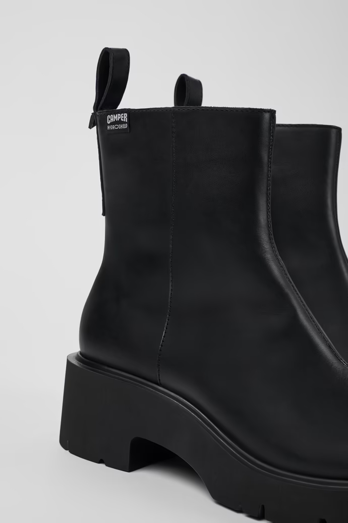 Μαύρες δερμάτινες γυναικείες μπότες με αδιάβροχες μεμβράνες HYDROSHIELD®, πάτους OrthoLite® Recycled™ και εξωτερικές σόλες EVA.
