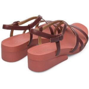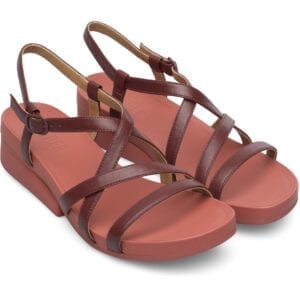 Μπορντό πέδιλο για γυναίκες. Επάνω μέρος με λεπτά λουράκια από 100% δέρμα και υποστήριξη στον αστράγαλο. Μπορντό 100% λαστιχένια σόλα, με χαμηλό τακούνι πλατφόρμα.