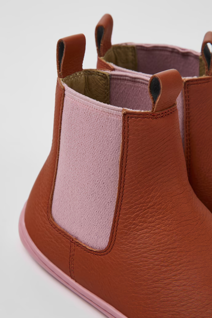 Κόκκινα δερμάτινα παιδικά μποτάκια με ελαστικά κορδόνια και εξωτερικές σόλες από λάστιχο (20% ανακυκλωμένο).