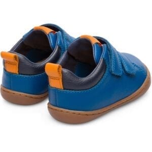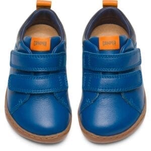 Μπλε σνίκερ με βέλκρο για αγόρια. Άνω τμήμα από μη αποψιλωμένο δέρμα με ραμμένη εξωτερική σόλα.
