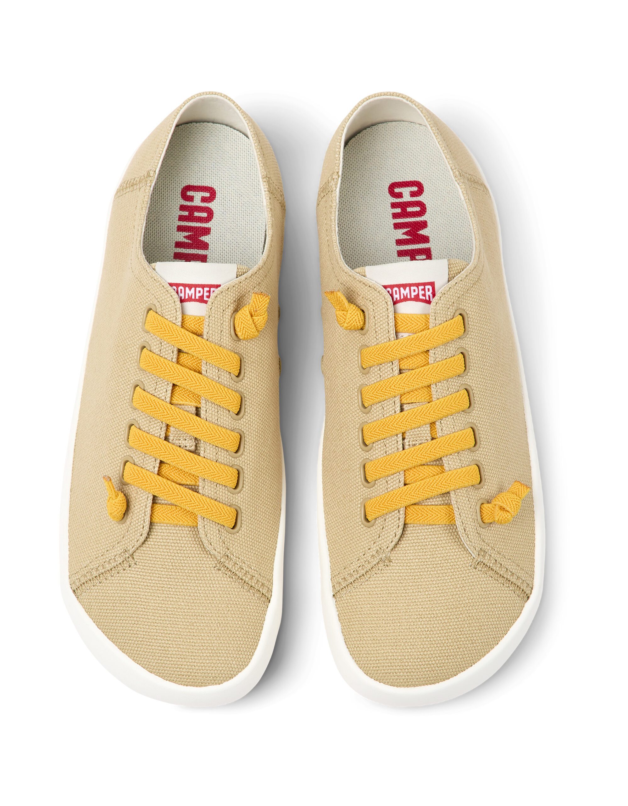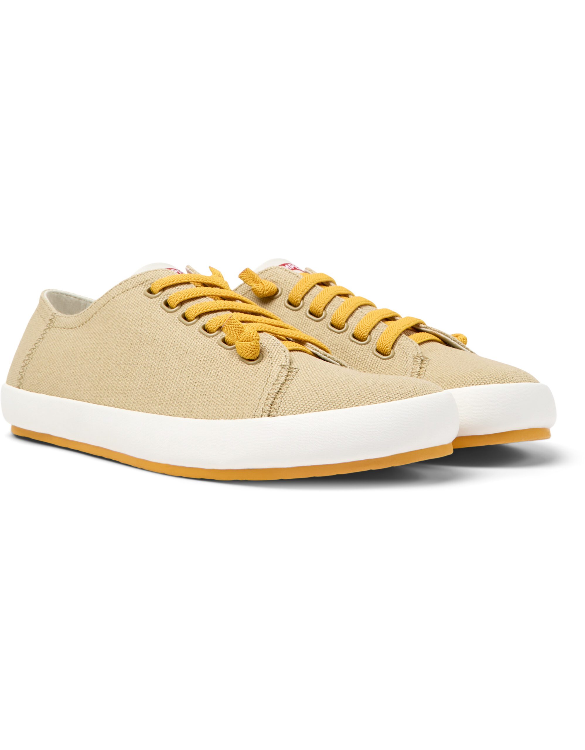 Μπεζ υφασμάτινα ανδρικά καθημερινά παπούτσια με αφαιρούμενους πάτους OrthoLite® Recycled™ αλλά και εξωτερικές σόλες από λάστιχο.