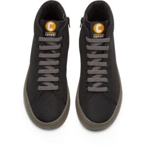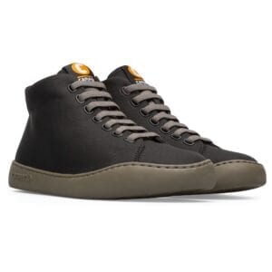 Μαύρα γυναικεία μποτάκια. Άνω τμήμα από ύφασμα με κοντράστ εξωτερικής σόλας EVA και ελαστικά κορδόνια.