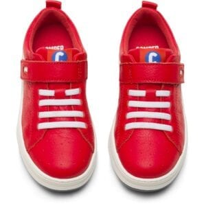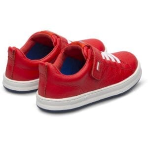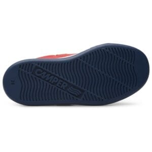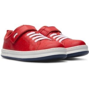 Κόκκινο καθημερινό παπούτσι για παιδιά. Επάνω μέρος από 100% δέρμα με κορδόνια. Λευκή και μπλε 100% λαστιχένια σόλα.