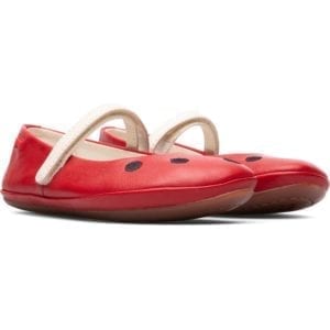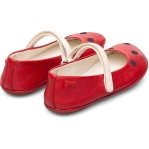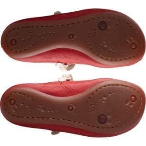 Κόκκινα και κρεμ παιδικά παντοφλέ παπούτσια από φυσικό δέρμα με λαστιχένια εξωτερική σόλα με ραφές.