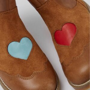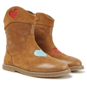 Μπότες σε καουμπόικο στιλ από καφέ δέρμα και νουμπούκ για παιδιά. Σύστημα κλεισίματος με φερμουάρ και λεπτομέρειες με ραφές στο επάνω μέρος. 100% λαστιχένια εξωτερική σόλα.