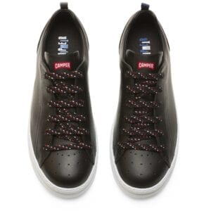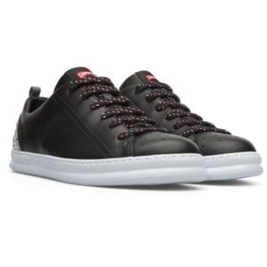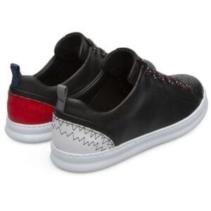 Μαύρο καθημερινό παπούτσι TWINS για άντρες. Επάνω μέρος από δέρμα με κορδόνια. Πίσω λεπτομέρειες σε λευκό και κόκκινο. Λευκή σόλα 100% EVA.