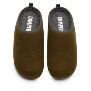 Σκούρες πράσινες αντρικές μάλλινες παντόφλες. Με αφαιρούμενη εσωτερική σόλα EVA και εξωτερική σόλα από καουτσούκ.