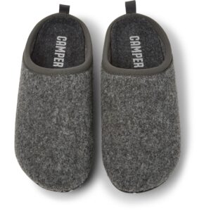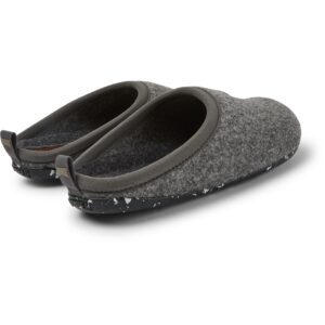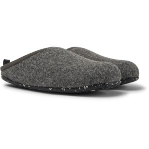 Γκρι μάλλινες γυναικείες παντόφλες από ανακυκλωμένο PET με λαστιχένια εξωτερική σόλα και αφαιρούμενη εσωτερική σόλα EVA.